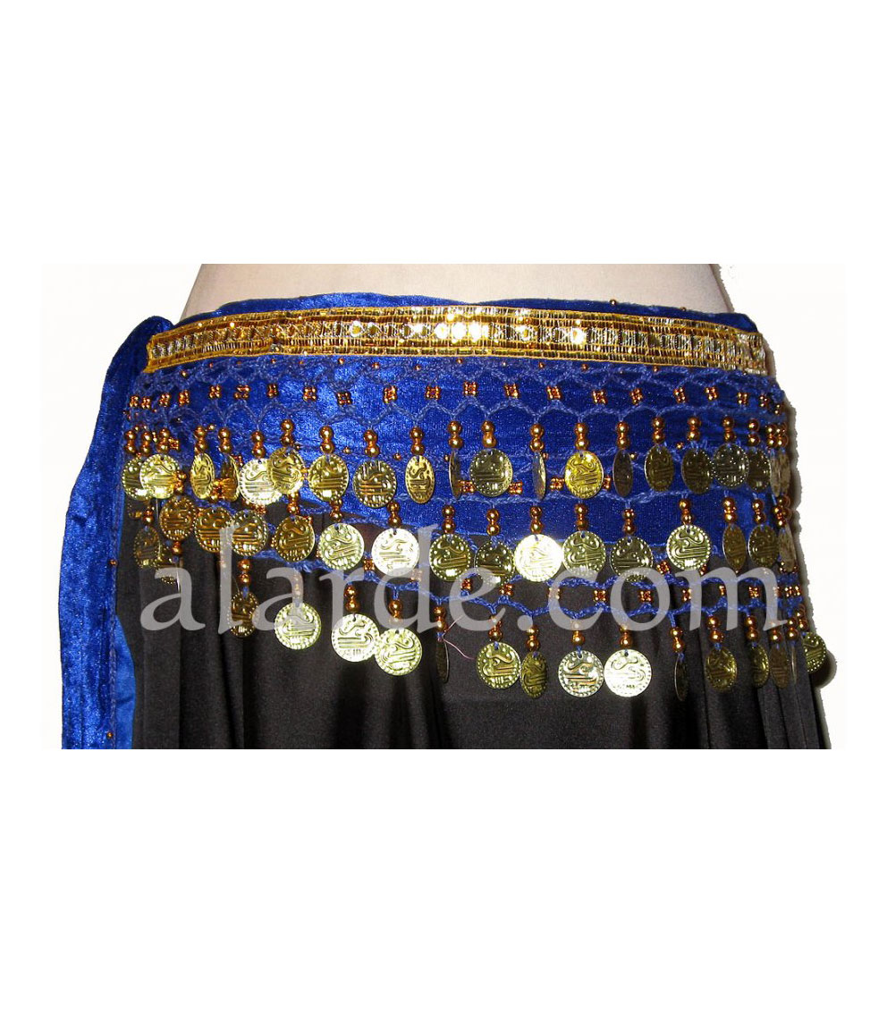 Bellydance hip Velvet scarf with coins and plastic beads.
