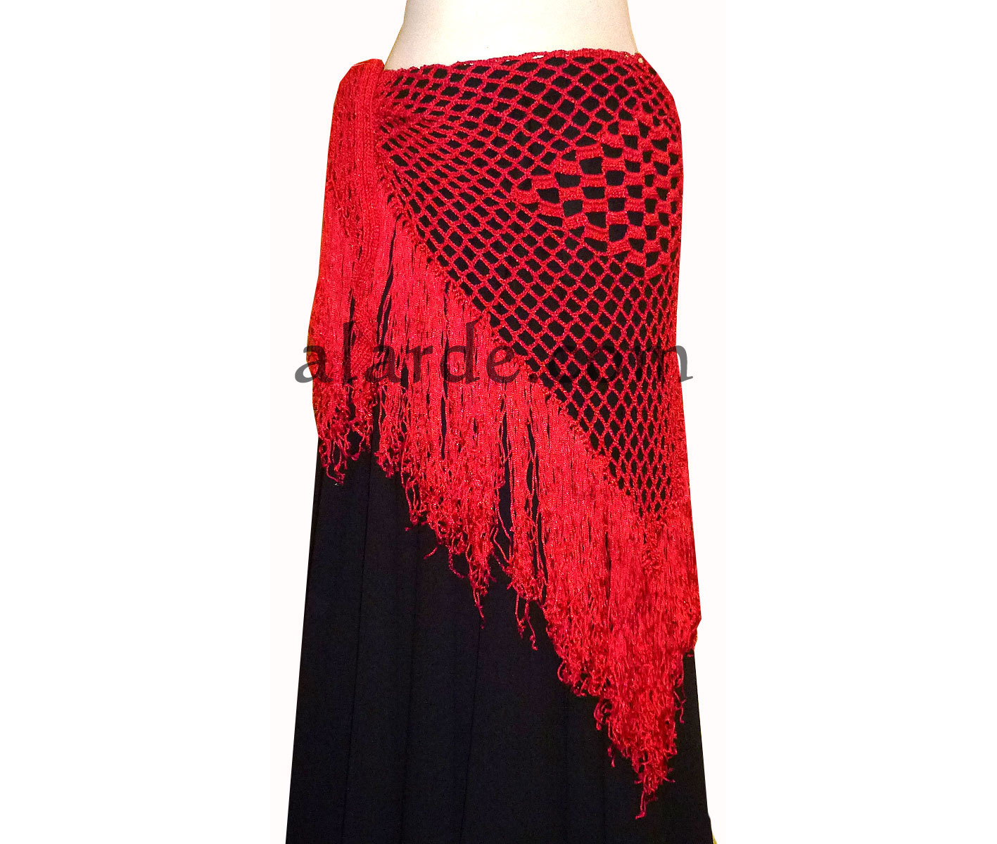 Triangular crochet scarf with fringes for tribal, fusion or practice in oriental dance.