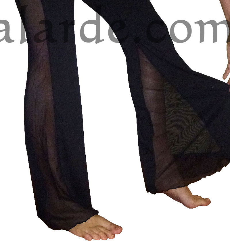 Stretch cotton, so that you be comfortable, with a transparency on the entire side of the pants from top to bottom and on the inside of the bell a transparent net girdle as well.