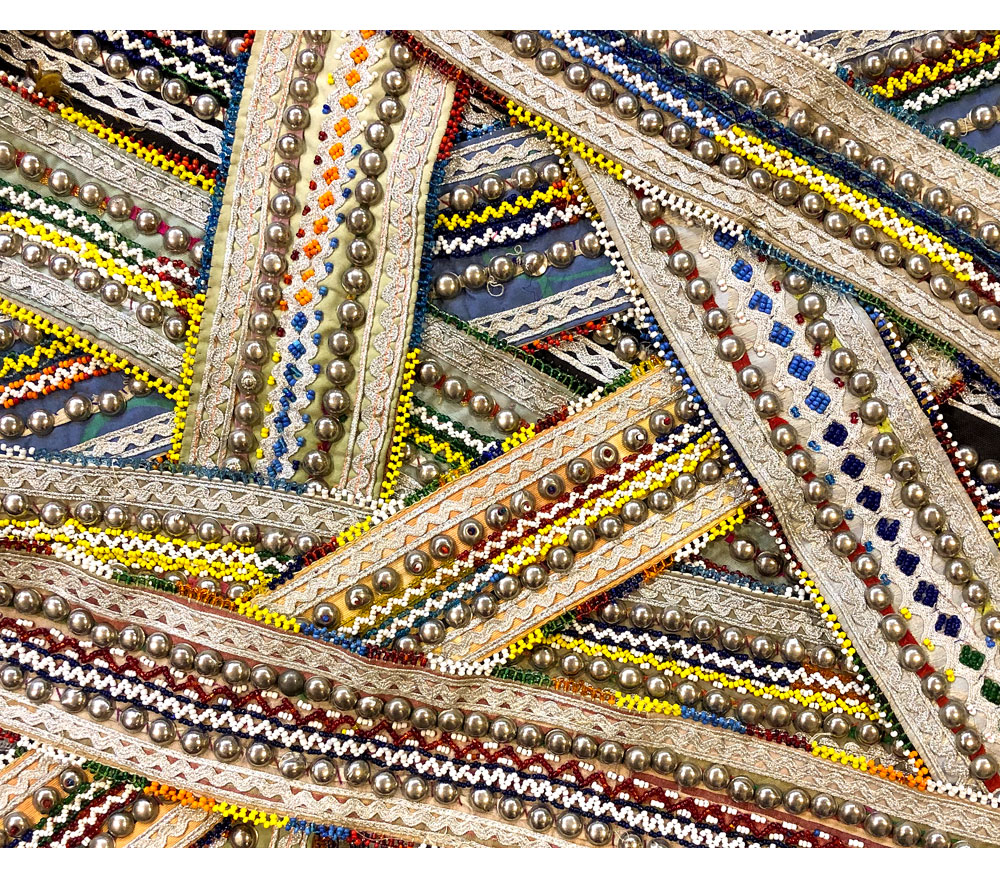 Cinturón kuchi tribal afgano, confeccionado con piezas antiguas de metal y mostacillas mates.