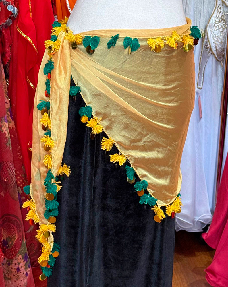 Este pañuelo originalmente es para llevar en la cabeza en la danza con maleya de Alejandría, pero le puedes dar mas usos: como pañuelo para la cadera en un estilo tribal. También lo utilizan algunas escuelas para que las niñas pequeñas lo lleven a la cadera en las clases infantiles. No pesa ni suena.