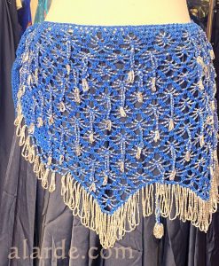 Pañuelo de croché con mostacillas de cristal – Azul con plateado